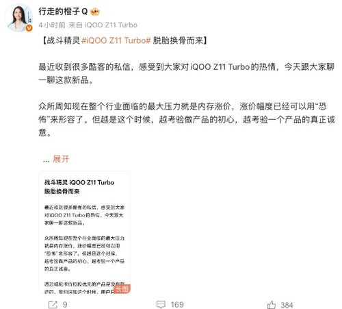 iQOO产品经理邢程正式预热Z11Turbo系列股票配资程序,直言这款新机将实现“脱胎换骨”的升级。面对当前行业内“恐怖”幅度的内存涨价压力,邢程强调,越是这种时刻越考验产品初心与诚意,靠减配卡价位段的产品没有前途,只有真正满足多场景需求的高价值产品,才配得上上涨的价格。